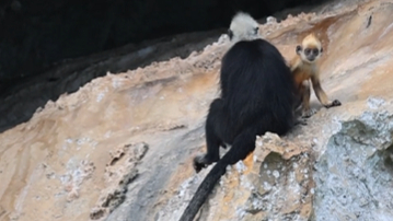 白头叶猴,头顶高耸着一撮白毛,是我国特有的国家一级重点保护野生动物,种群数量稀少,主要分布在广西崇左市左江和明江之间约200平方公里的喀斯特石山地区。白头叶猴还有个好听的名字——“石山精灵”。