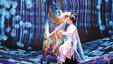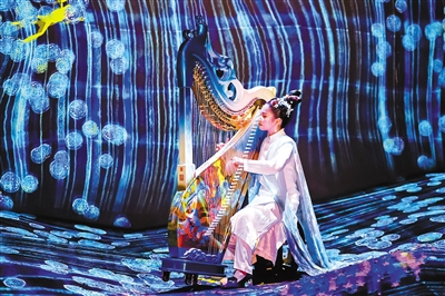 以往的音乐会中,观众是在固定位置坐着听,而在沉浸音乐会《只此一梦》上,现场的观众跟随着指引不断行进,从而开启了一种新的听音乐和逛展览的模式。例如,《无穷无尽的水晶宇宙》本来就是北京teamLab无相艺术空间的网红打卡点,如水晶雨滴一般的视觉呈现,配合琵琶叮咚如玉珠散落水晶盘中,竹笛声悠扬似鹧鸪穿飞琼林苑里,正是玉树琼枝点点鸟,珠花盛开鹧鸪飞!《只此一梦》沉浸音乐会是可以听的画面,是可以看的音符,观众与乐手可谓“零距离”。