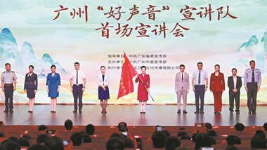 8月11日,广东省基层宣讲示范队伍首场活动——广州“好声音”宣讲会在广州图书馆1号报告厅举行。来自广州“好声音”宣讲队的11名基层百姓宣讲员,深情讲述了广州作为海上丝绸之路的一个起点、中国民主革命的策源地、中国改革开放的排头兵的生动故事,展示新时代广州满怀感恩感激之心、砥砺奋发奋进之情,在推进中国式现代化建设中走在前列的昂扬步伐。