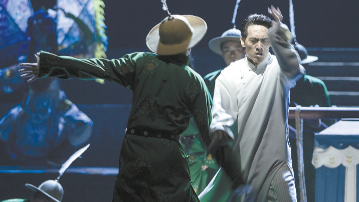比如,冯梦临离开天津前与附有他亡子灵魂的树木作别时,灯光制造出的树影婆娑;生万物去世时,纸扎飞机的升空飞远;“重塑雕像的权利”乐队成员刘敏打造的暗合人物情绪波动、时而温煦时而冷冽的电子配乐……都极具想象力和冲击性,引领观众走进已然远去但追忆起来情真意切的武林世界。
