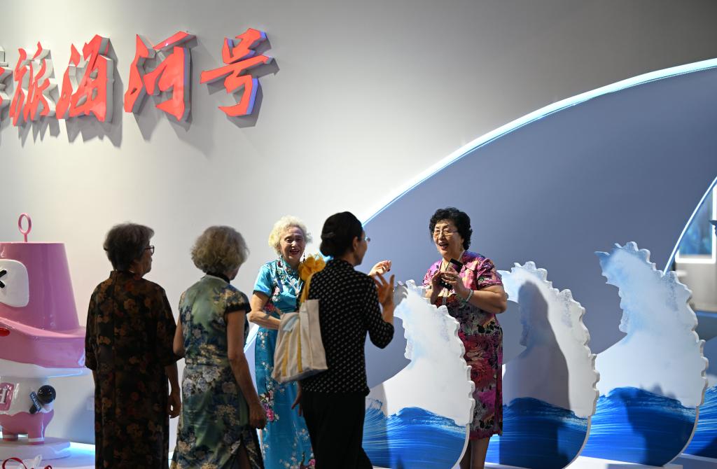 9月2日,观众在第十三届中国旅游产业博览会天津市旅游集团展区内参观。新华社记者 赵子硕 摄