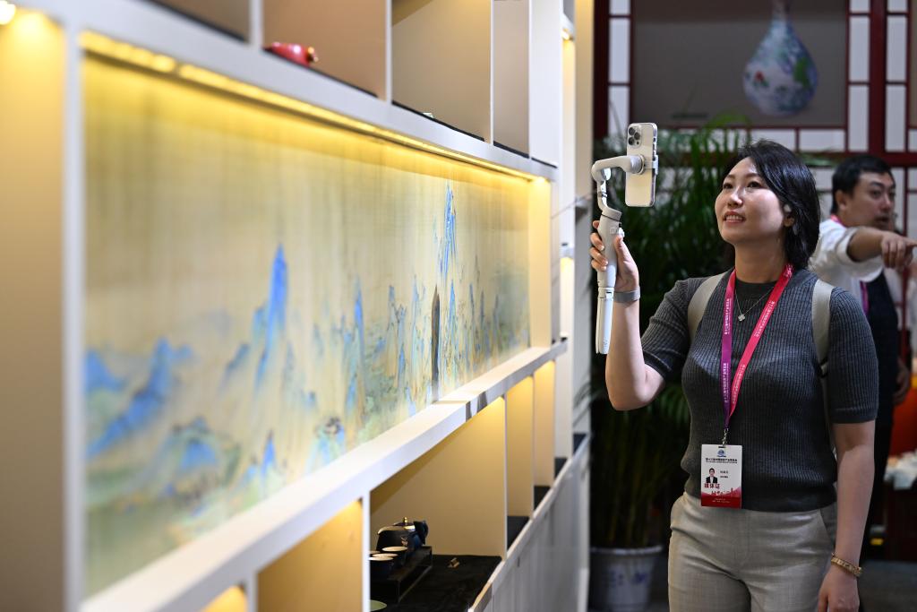 9月2日,观众在第十三届中国旅游产业博览会故宫博物院展区内参观。新华社记者 赵子硕 摄