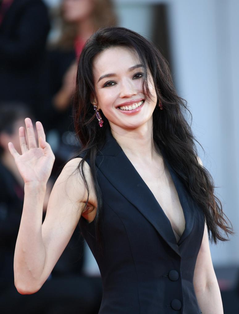 8月30日,在意大利威尼斯,第80届威尼斯电影节主竞赛单元评委、演员舒淇亮相开幕式红毯。(新华社记者金马梦妮摄)