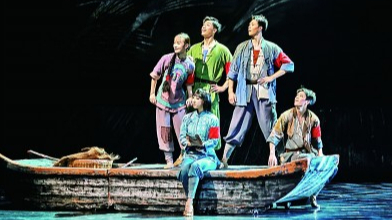 9月23日,由湖北艺术职业学院出品,湖北艺术职业学院、中国电信武汉艺术团演职人员共同演绎,国家艺术基金2023年度传播交流推广资助的项目舞剧《洪湖水浪打浪》在武汉市湖北剧院开启巡演,将分三个阶段在武汉市累计巡演15场。图为演员们在表演舞剧《洪湖水浪打浪》。