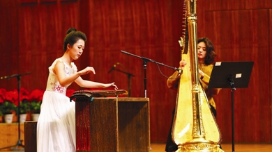 为庆祝天津音乐学院建校65周年,学院民乐系金钟、文华、电视大赛金奖音乐会昨晚在天津音乐学院音乐厅上演。本场音乐会由民乐系七名历届金钟、文华、电视大赛金奖获得者携多名优秀教师与学生共同诠释民族音乐的魅力。