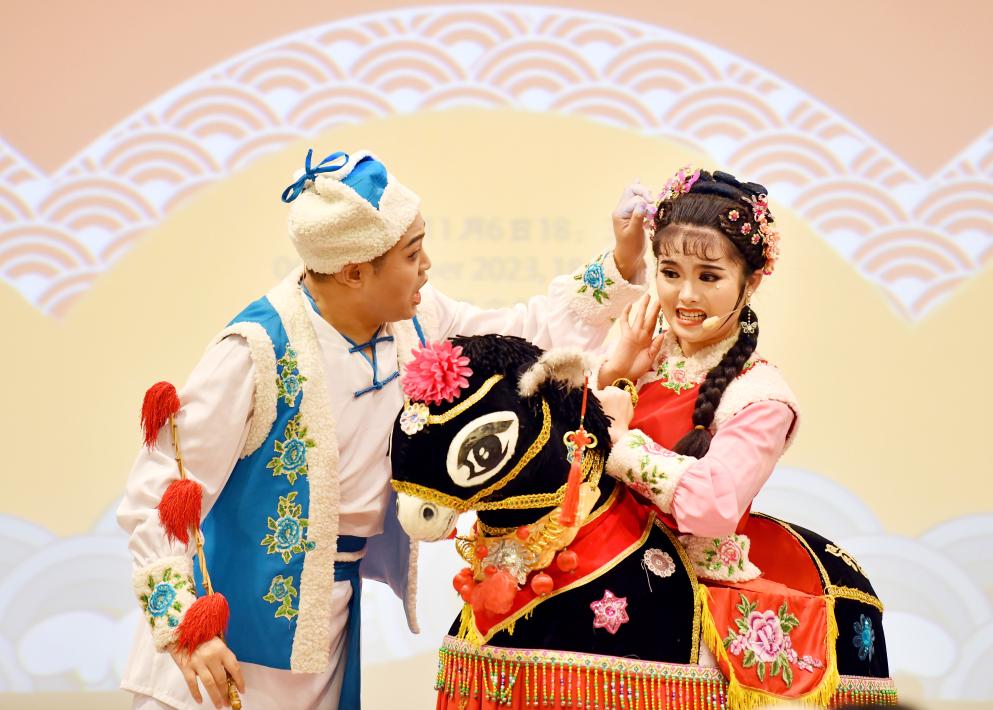 11月6日,演员在柏林第八届德国“中国曲艺周”闭幕演出中表演二人转。