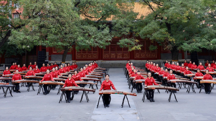 15日上午,在中央音乐学院王府南大殿前,由中央音乐学院师生、中央音乐学院新时代文明实践文艺宣讲师、中央音乐学院新时代文明实践河南兰考基地古筝学生以及全国各地一线古筝教师组成的“兰考古筝百人演奏团”为大家依次演奏了《盛世华筝》《战台风》《焦桐花儿开》和《我和我的祖国》四首歌曲。四首作品缀连成“诗”,既有气势磅礴、万马奔腾的壮观景象,也有传承精神、用心用情的焦桐花开;既有文化交流、文明互鉴的和谐乐章,也有直抒胸臆、质朴表白的深情礼赞,这些用兰考泡桐制成的古筝,奏响了校地合作新气象,展现了“文艺为民”新作为。