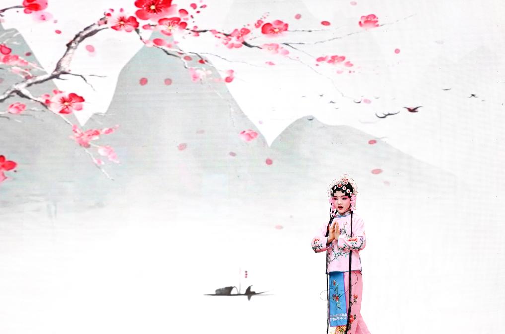 11月23日,西安市新城区西一路小学学生高雨萱表演秦腔《虎口缘》片段。