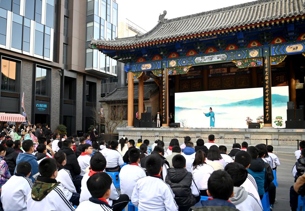 当日,西安市新城区“戏曲非遗传薪火 国粹文化立自信”新时代文明实践进校园活动在西安易俗社文化街区举行。西安市新城区西一路小学的百余位师生聆听秦腔经典曲目,感受传统戏曲文化魅力。