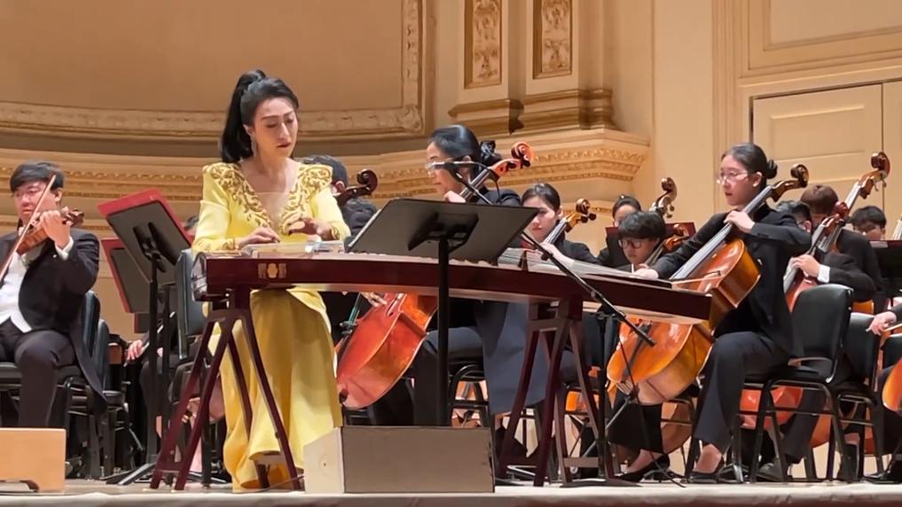 一架古筝,弹奏出数千年的中华优秀传统文化,也拨动了美国观众的心弦。中央音乐学院副院长、竹笛协奏曲《苍山序》创作者秦文琛说:“每一件中国民族乐器都是中国文化的结晶,和西方的管弦乐队放在一个调色板上,本身就是文化的交流和对话。”