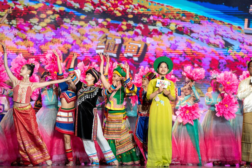 当日,第十一届澜沧江·湄公河流域国家文化艺术节开幕式暨文艺晚会在云南省西双版纳傣族自治州景洪市举行。来自中国、老挝、缅甸、泰国、柬埔寨、越南6国的艺术工作者表演了风情浓郁的文艺节目,让观众享受了一场视听盛宴。
