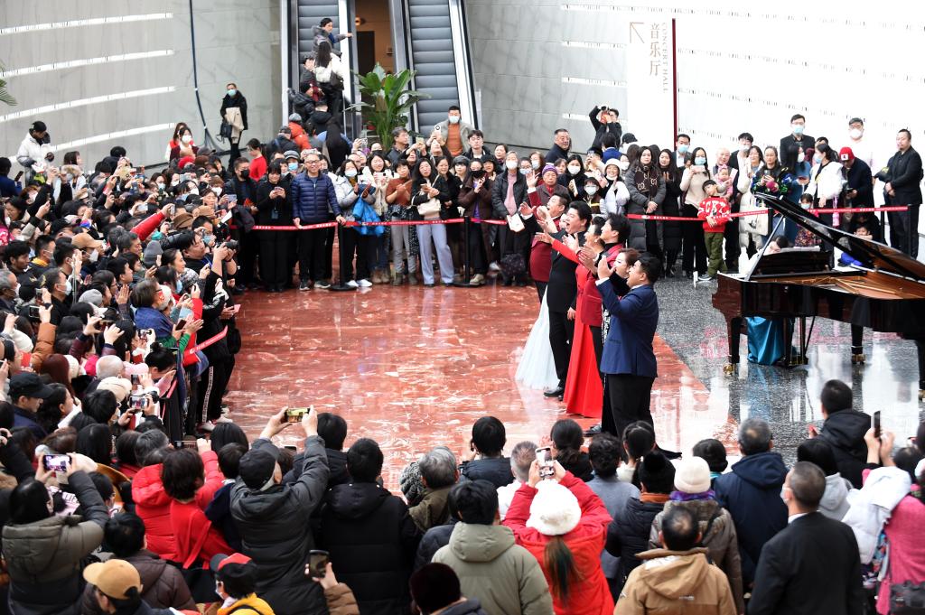 12月22日,观众在国家大剧院橄榄厅欣赏国家大剧院歌剧演员队带来的歌剧经典唱段。新华社记者 罗晓光 摄