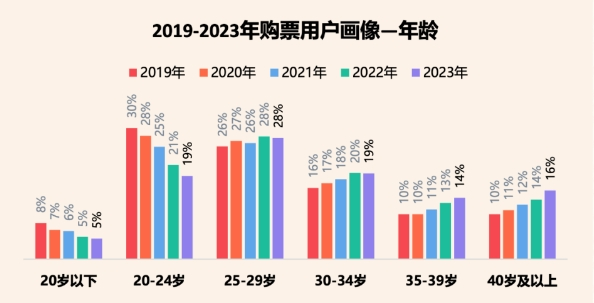 灯塔专业版的数据佐证了这一新变化,与2019年相比,00后观众的比例增加了近1倍,并且仍在不断提升。从购票用户画像来看,24岁及以下、25岁至29岁两个年龄段的观众占比分别为24%、28%,是目前院线观众数量占比最高的群体。