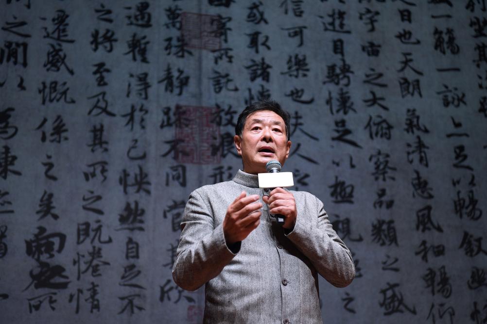 1月9日,濮存昕在香港故宫文化博物馆讲座现场即兴朗诵《兰亭集序》。新华社记者 陈铎 摄