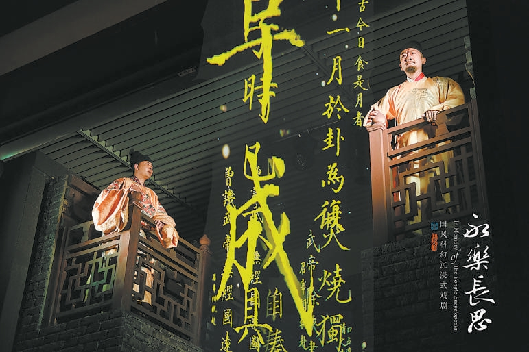 《永乐大典》是中国古代最大的类书,其正本成书于明永乐年间,副本重录于嘉靖年间。但令人痛心的是,正本散轶至今下落不明,副本目前仅有400余册、800余卷及部分零叶存世。为了把这部国宝文物饱受挫折又不断浴火重生的历史呈现给当代观众,国家图书馆(国家典籍博物馆)与白镜戏局联合出品了沉浸式戏剧《永乐长思》。