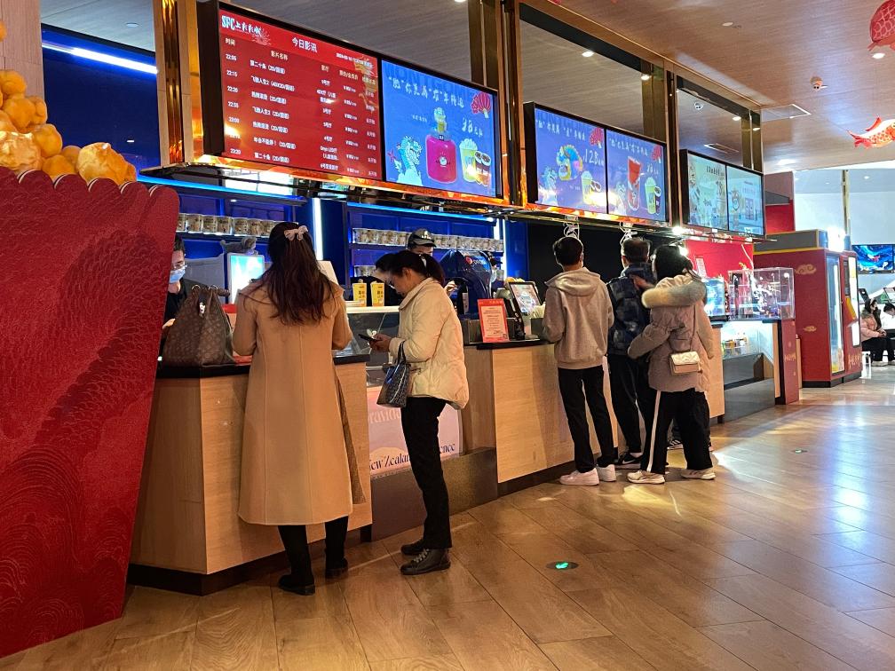 2月16日,上海市某电影院购票处,人们正在购票。新华社记者 程思琪 摄