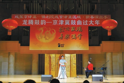 京津冀三地名家唱响“龙腾鼓韵——京津冀鼓曲过大年”。记者 方非摄