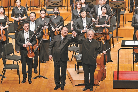 王健的琴声极富感染力,音乐急促紧张时,他躬身投入,将大提琴紧紧环抱,旋律舒缓时,琴弓在弦上盈满悠长的线条。一曲奏毕,全场掌声如雷,王健几次致谢,喝彩更盛。在极致尽兴的乐音里,肖斯塔科维奇写于半百之年的人生感怀、特殊年代留下的波澜与烙印穿越时空,长久地震撼了每一位听众。