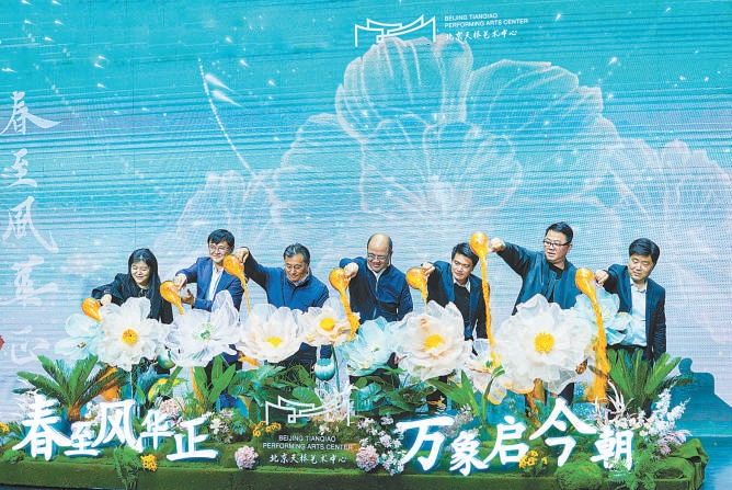 嘉宾为天桥艺术中心2024年好戏启幕,浇灌艺术之花。 记者 方非摄