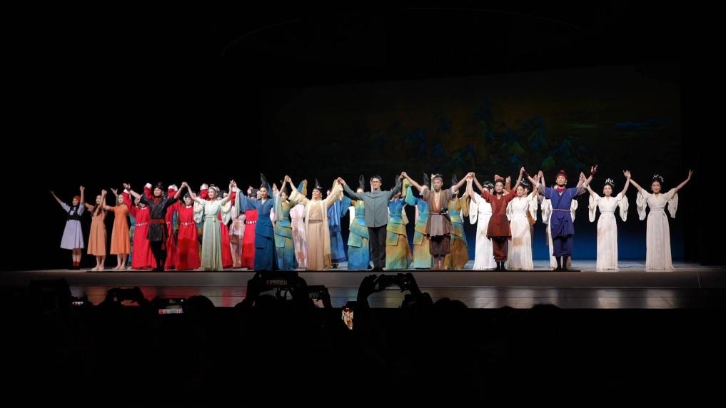 舞蹈诗剧《只此青绿》演员向观众谢幕。视频截图