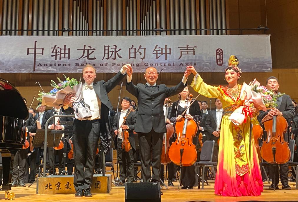 新华社北京4月9日电(记者罗鑫)铜管乐器与琵琶齐奏;钢琴与京剧“对话”;小提琴演绎京韵狂想曲……《中轴龙脉的钟声(交响篇)》音乐会6日晚在北京中山公园音乐堂落幕。音乐会回溯古都悠久历史、绵长文脉,呈现了北京中轴线上独特的音乐律动。