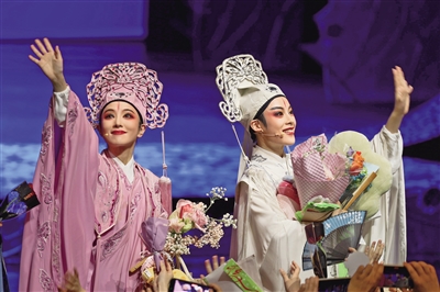 2023年,小百花团两位年轻越剧演员陈丽君、李云霄在社交平台“出圈”,让浙江小百花越剧团受到大量年轻人的关注。数据显示,浙江小百花越剧团2023年演出总场次超过了200场,创下了历史新高,线下演出一票难求,场场爆满,不管哪个剧目,剧场内受众群体80%都是从未接触过越剧的年轻人。蔡浙飞说:“演员们积累了更多年轻粉丝后,她们也会更自信,更享受传统舞台。其实我们一直都在努力传承越剧,除了练好基本功,在当下更需要我们去思考的是以短视频为主流传播渠道的自媒体时代,如何让传统戏曲文化走近年轻人,通过戏曲展示中华文化。”