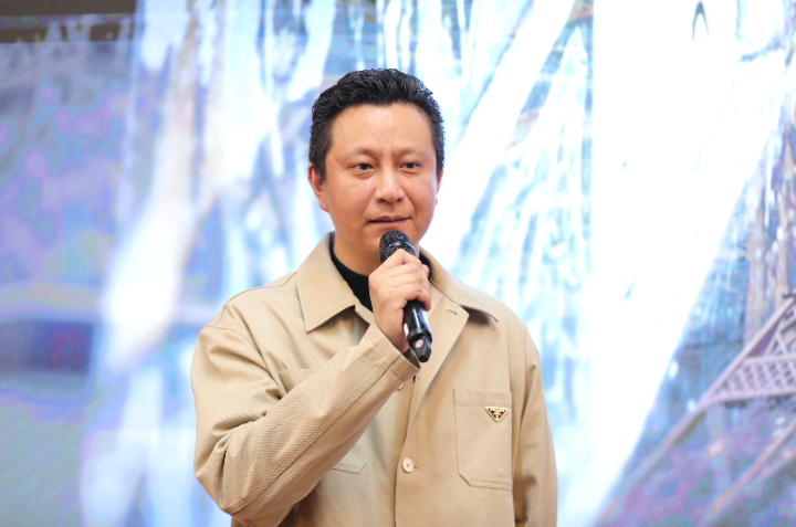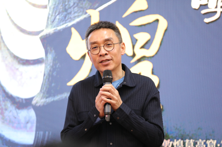 北京国话数字文化科技有限公司总经理苏子航介绍项目筹备基本情况。他表示,《受到召唤·敦煌》是中国国家话剧院今年的年度力作,是一部深度挖掘中华优秀传统文化的作品,更是一部体现新质生产力、集“戏剧艺术+数字科技”的创新之作,希望打造成为一部具有社会影响力的优秀戏剧作品。