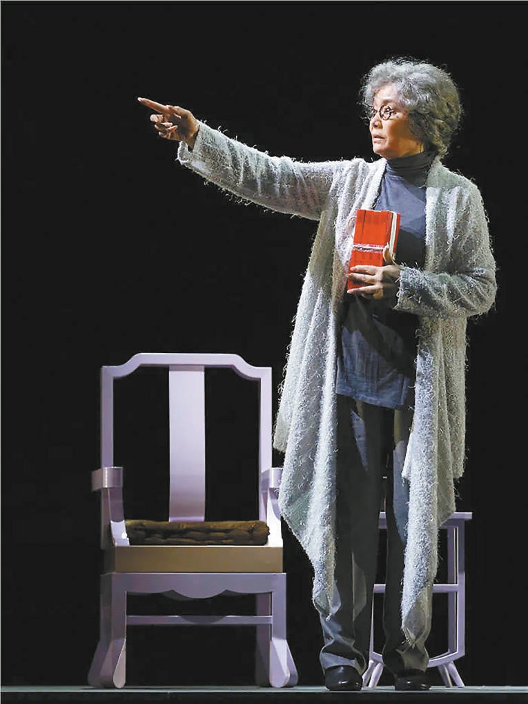 话剧《繁花》第二季每场演到一个半小时的时候,灯光昏暗的舞台上,都会出现一张搭着破旧绣花帐子的老床,旁边坐着一位身穿灰色衣服、披着素色披肩,头发花白的老太太,她就是潘虹扮演的黎老师。角色的强大气场深深吸引着每一位观众。