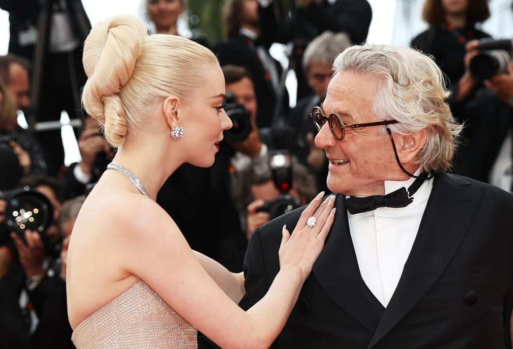 5月15日,在法国南部小城戛纳举行的第77届戛纳国际电影节上,影片导演乔治·米勒(右)与主演安雅·泰勒-乔伊出席非竞赛单元影片《疯狂的麦克斯:狂暴女神》首映礼。新华社记者 高静 摄