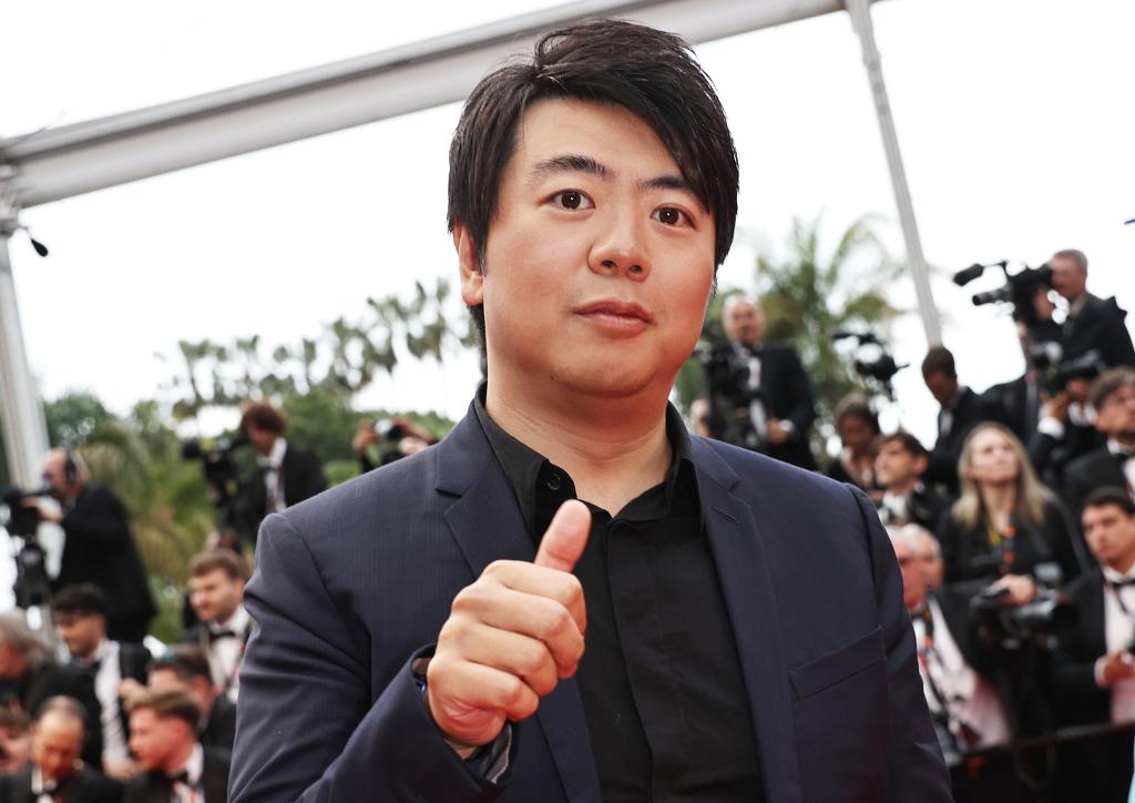 5月15日,在法国南部小城戛纳举行的第77届戛纳国际电影节上,中国钢琴家郎朗出席非竞赛单元影片《疯狂的麦克斯:狂暴女神》首映礼。新华社记者 高静 摄