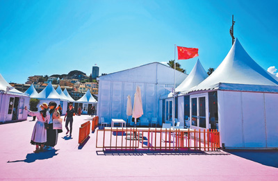 中国电影机构在戛纳国际村设立中国馆,并在此举办各类电影研讨交流活动。