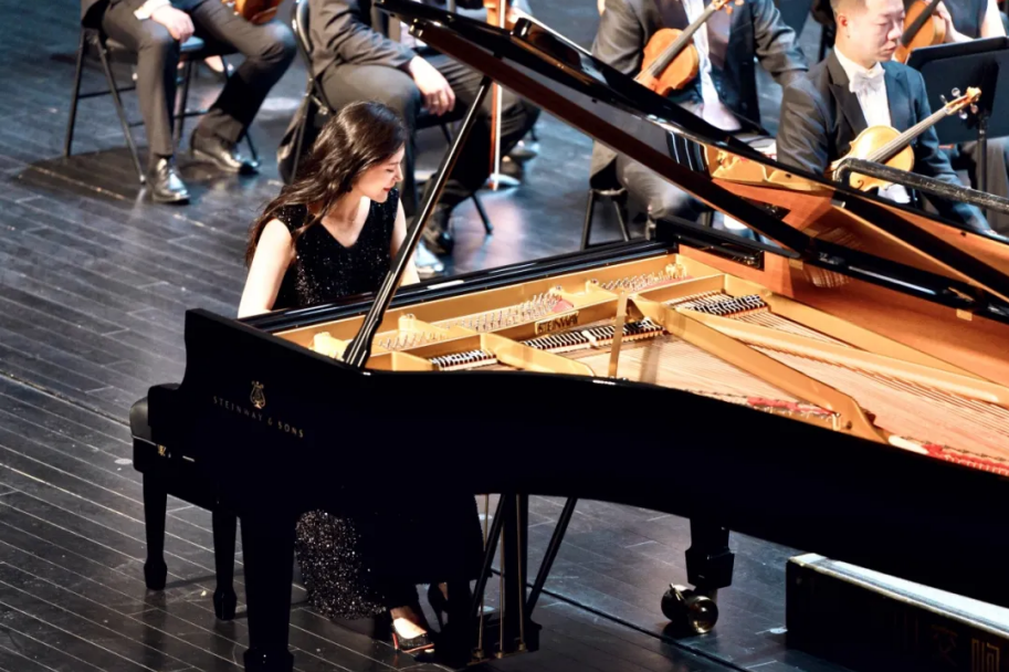 紧接着,鞭子抽出轻快的音调,拉威尔的《G大调钢琴协奏曲》如清风拂面般袭来。莫里斯·拉威尔是一位既古典又时尚的法国作曲家,这与担任此次巡演独奏的中国钢琴家——孙佳依的气质格外契合。随后在观众的掌声中,孙佳依返场演奏中国名曲《浏阳河》和法国作曲家埃里克·萨蒂的《芭蕾圆舞曲》。
