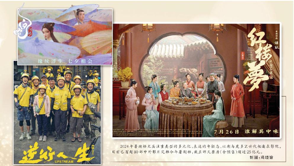 2024年暑期档尤其注重类型的多元化、表达的年轻态,以期与更多Z世代相逢在影院。目前已有超80部中外影片定档今年暑期档,截至昨天票房(含预售)超过25亿元。 制图:冯晓瑜