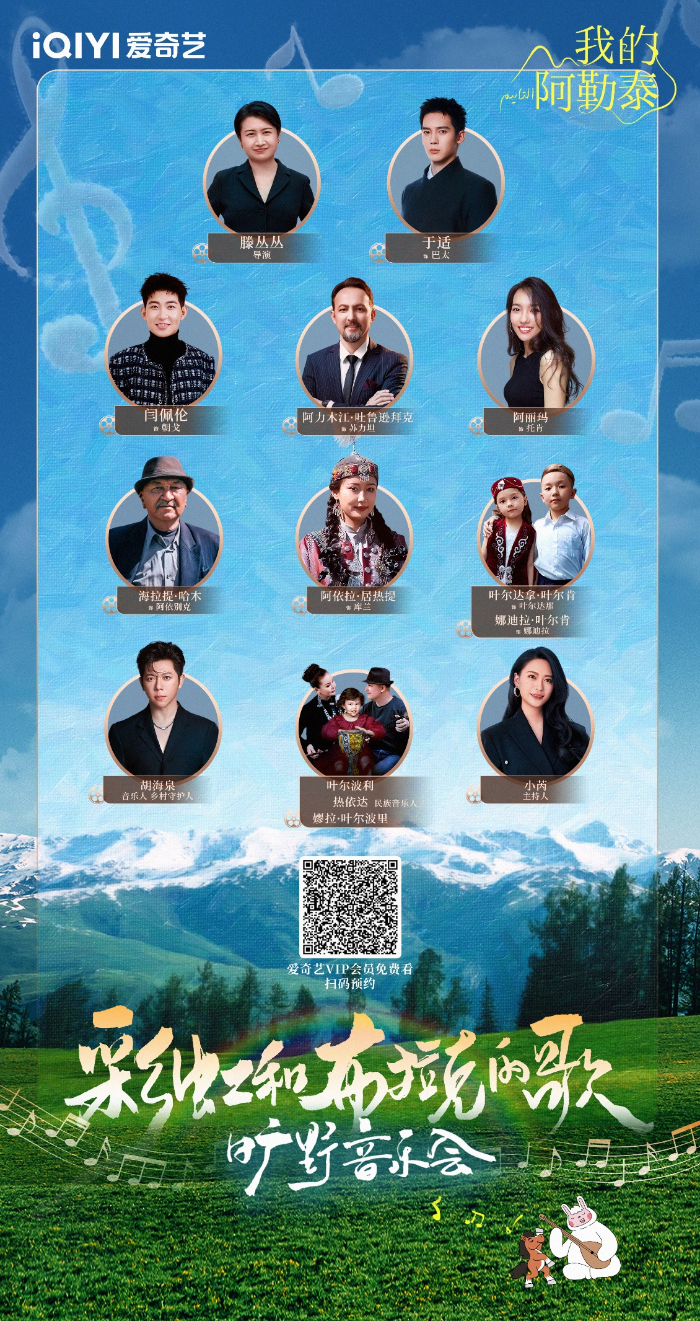 7月22日,彩虹和布拉克的歌《我的阿勒泰》旷野音乐会正式公布11首歌单。导演滕丛丛,演员于适、闫佩伦、阿力木江·吐鲁逊拜克、阿丽玛、海拉提·哈木、阿依拉·居热提等主创,将于7月23日活动当天悉数到场。届时,爱奇艺VIP会员朋友们可免费观看音乐会直播,畅享聆听《月光》《回家吧》《彩虹布拉克》等剧中歌曲,重温阿勒泰的温暖与美好。同时,音乐人、乡村守护人胡海泉,民族音乐人叶尔波利、热依达等也将齐聚草原,一起唱响彩虹布拉克之歌。