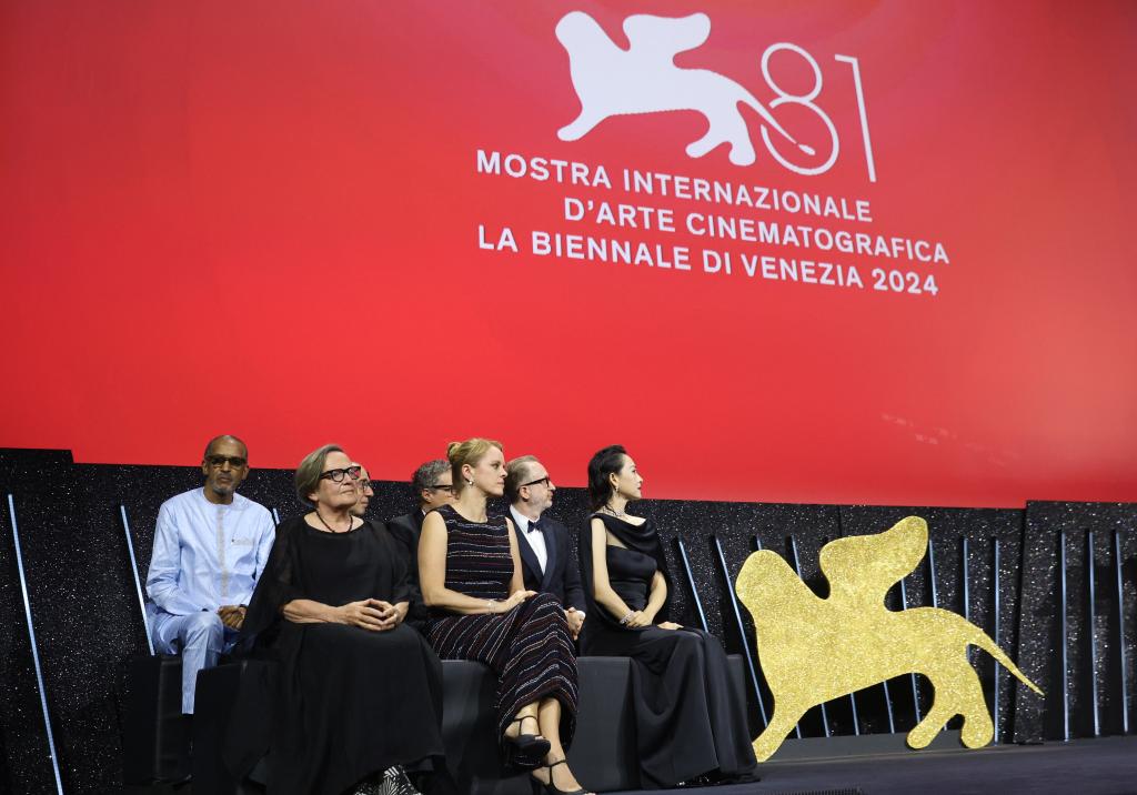 9月7日,在意大利威尼斯,第81届威尼斯国际电影节主竞赛单元评委参加闭幕式。新华社记者 李京 摄
