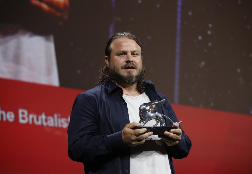 9月7日,在意大利威尼斯,凭借影片《野兽派》获得最佳导演奖的美国导演布雷迪·科比特与奖杯合影。新华社记者 李京 摄