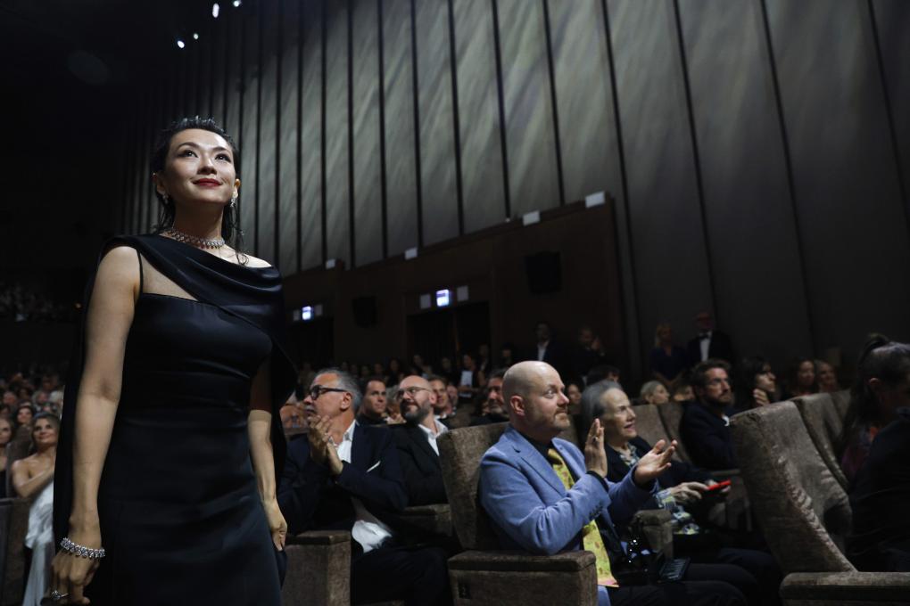 9月7日,在意大利威尼斯,第81届威尼斯国际电影节主竞赛单元评委章子怡(左)出席闭幕式。新华社记者 李京 摄