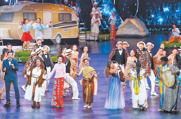 演出尾声,来自世界各地的中外艺术家们汇聚一堂,以星空下的露营为背景,民族舞与街舞的舞蹈家们切磋技艺,民乐与西洋乐演奏家们惊喜合奏。多国歌手唱响各自民族古老的民谣,传递着“文化通心,携手同行”的美好祝愿。(北京日报记者 李夏至)