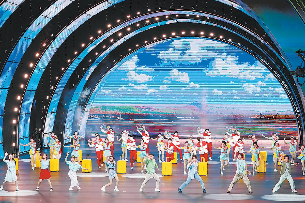 欢乐的开场演出《遇见中国》讲述了在中国施行144小时过境免签政策背景下,海外朋友开启中国文化探秘之旅的故事。本版图片均为本报记者 方非摄