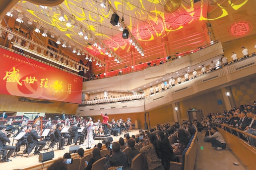 一曲《闪光的记忆》拉开“盛世弦歌”音乐会的大幕,众多师生校友一一登台。整场音乐会的曲目设计,既有弘扬中华传统优秀音乐文化的作品《陕北信天游》《黄河渔娘》,也有革命主题音乐作品《红梅赞》《娘在那片云彩里》《我的爱人你可听见》,还有《父亲的草原母亲的河》《绒花》……每曲终了,台下都爆发出热烈的掌声。