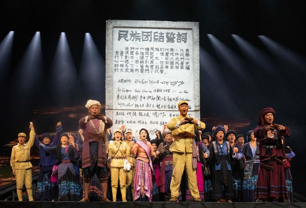 10月13日晚,由云南省话剧院制作出品的民族史诗话剧《澜沧水长》在云南省大剧院上演。该剧生动展现了新中国成立之初云南各民族代表共同立下普洱民族团结誓词碑的过程。