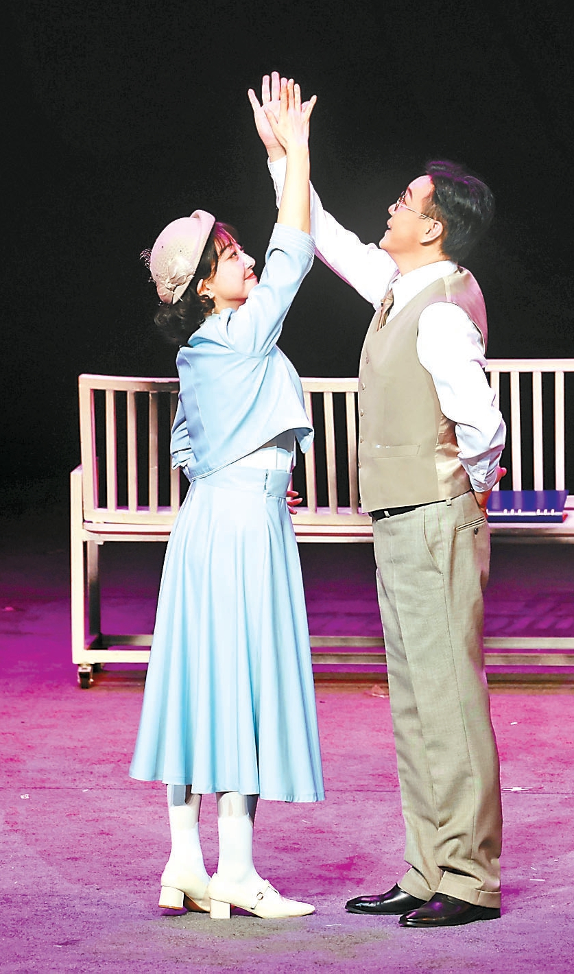 80年的跨度,大写意的笔触作为底色,几场重头戏着力雕琢。美国康奈尔大学的校园,李佩与郭永怀四目相对、结缘定情的一刻,穿着洋装的两位演员魏春荣和袁国良无法用昆曲的飘逸的身段表达情绪,此时,生活化又不失舞台感的表演也正是昆曲现代戏最大的看点。痛失爱侣后,魏春荣饰演的李佩先生也是内敛克制却痛彻心扉,古老的艺术与永不过时的精神互为依托,艺术气质与精神风骨凝练成一个精华唱段,让人印象极深。