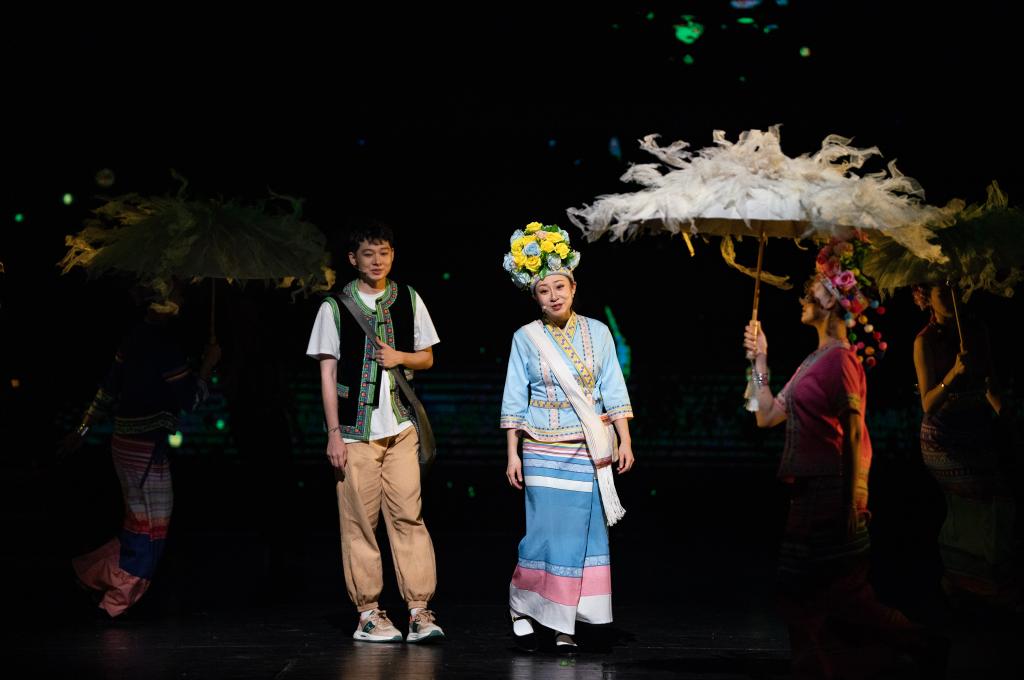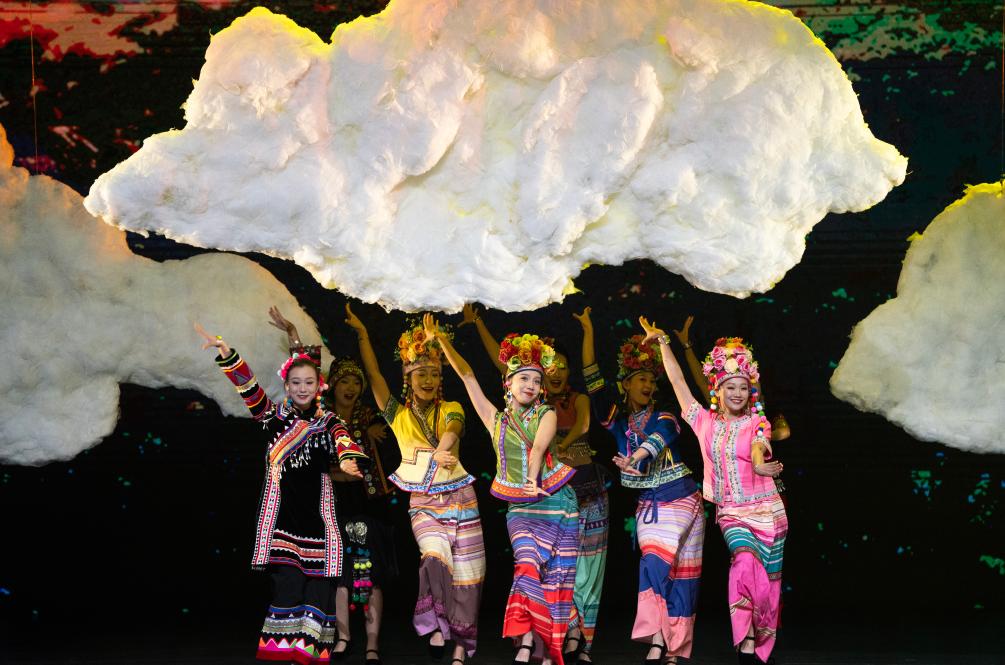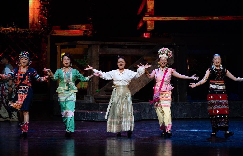 10月18日晚,演员在云南省大剧院表演音乐剧《景迈有嘉木》。新华社记者 陈欣波 摄