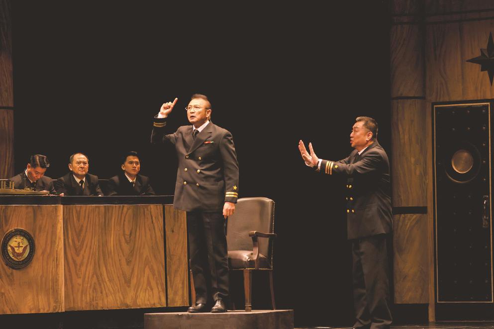 大幕拉开,军事法庭的灯光次第亮起,两个半小时内,一场美国海军舰艇的“哗变”,一次军事审判的“哗变”,探讨着战争这一复杂议题。上世纪八十年代,北京人艺推出多场西方大戏,这部《哗变》也在其中。1988年,《哗变》经英若诚翻译,由导演过该剧的美国演员查尔顿·赫斯顿来华执导,朱旭、任宝贤、修宗迪、李光复等北京人艺表演艺术家出演。2006年,该剧复排并由第二代演员接棒。冯远征说:“《哗变》是北京人艺外国戏的保留剧目,这部戏走到今天,是因为它够经典。不光是我们这一代,很快会有第三代演员把它传承下去。”