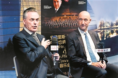 演出前,维也纳爱乐乐团主席、小提琴演奏家丹尼尔·弗洛绍和维也纳爱乐乐团总经理、低音提琴演奏家迈克尔·布拉德勒接受采访。谈及自己入行以来古典音乐行业发生的变化,迈克尔·布拉德勒表示,“过去的三四十年间,不只是维也纳爱乐,整个世界的交响乐团有一个非常大的改变,就是技术在其中发挥了更多的作用,技术的高速发展也影响了整个乐团现在的经营以及演出方式。”