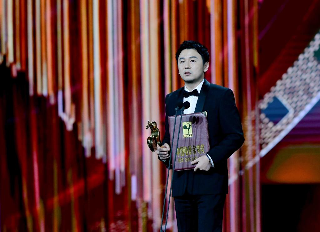 11月16日,王骁在台上领奖。王骁凭借《三大队》获得最佳男配角奖。新华社记者魏培全摄