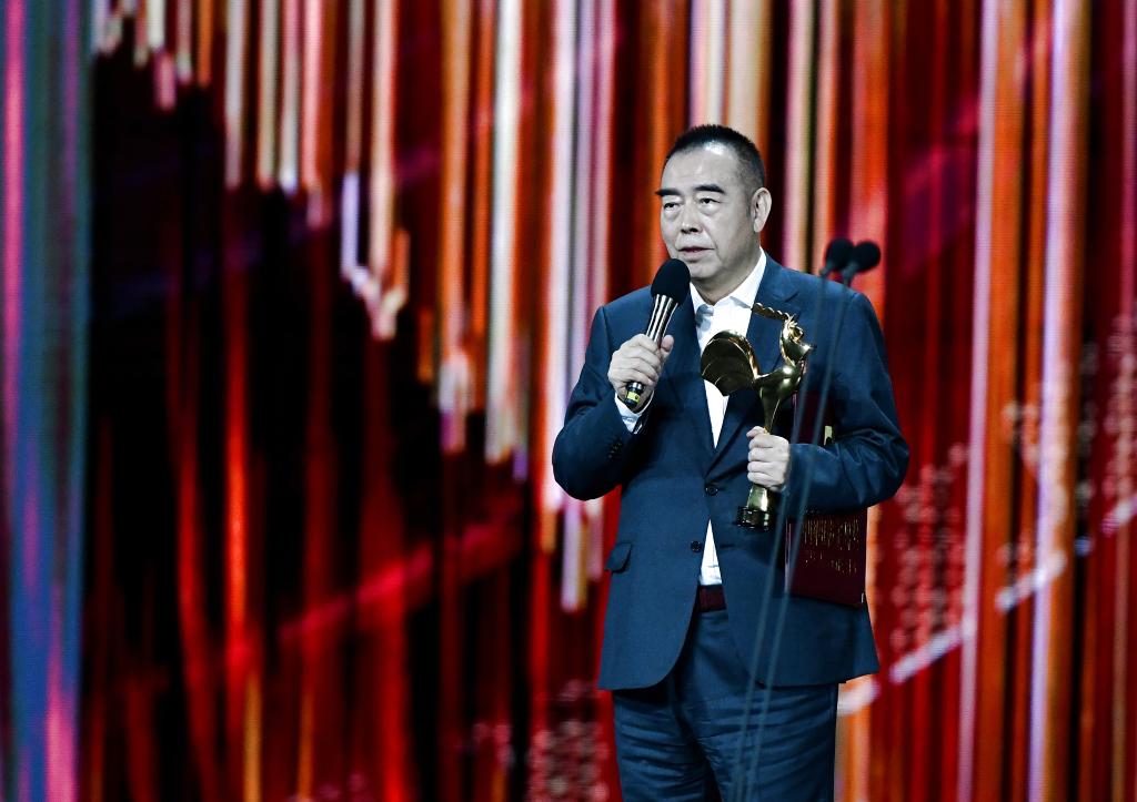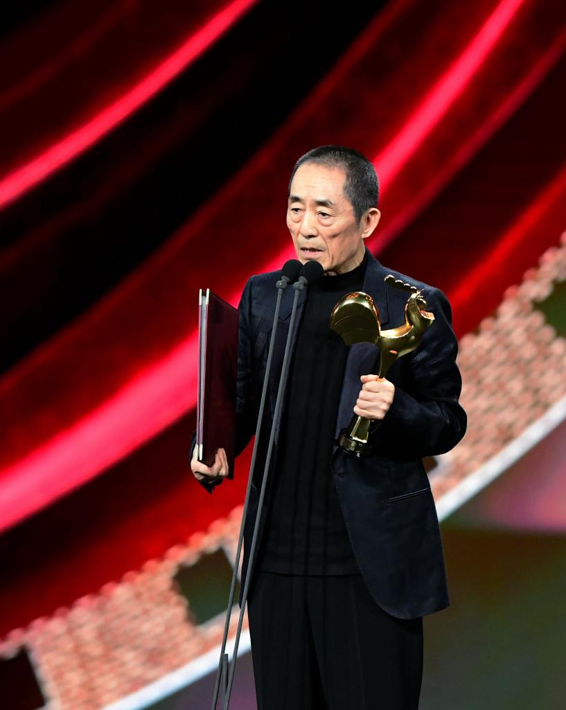 11月16日,《第二十条》导演张艺谋在台上领奖致辞。新华社记者魏培全摄