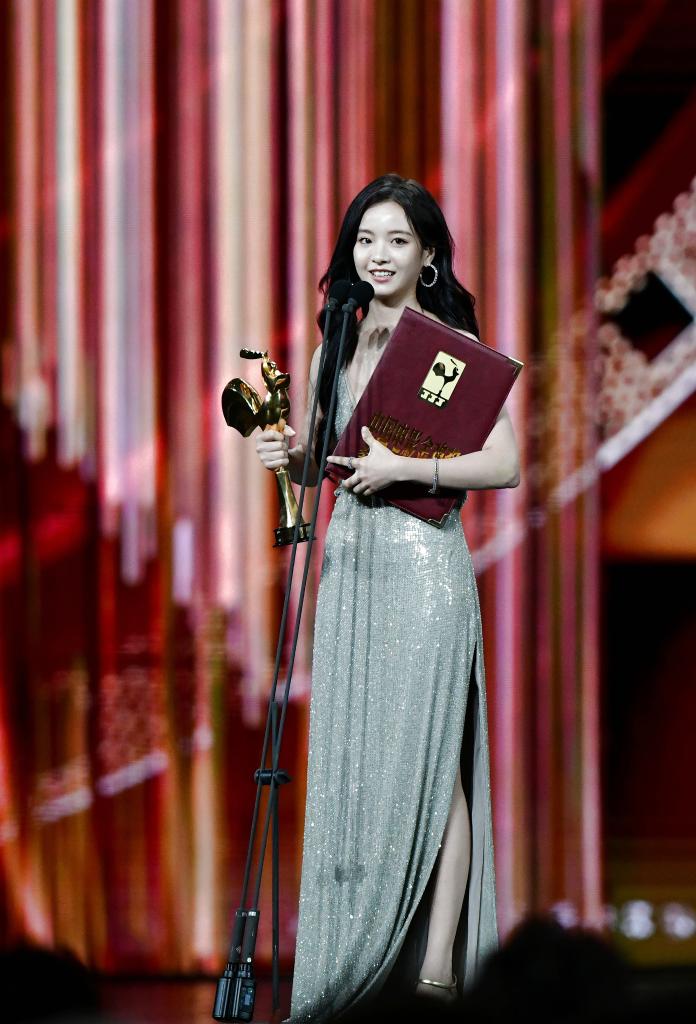 11月16日,李庚希在台上领奖。李庚希获最佳女主角奖。新华社记者魏培全摄