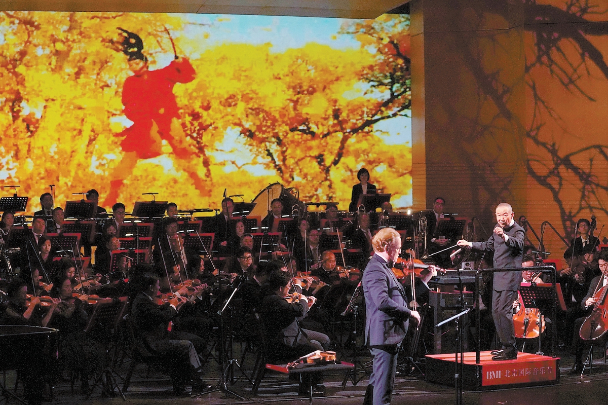 谭盾指挥《武侠三部曲》交响音乐会剧照。北京日报记者 方非摄