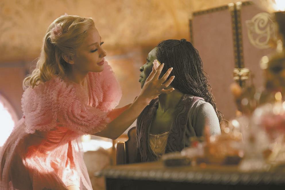 与百老汇启用职业音乐剧演员不同,好莱坞更倾向于明星加盟。该片试图去搞定某种平衡。主演绿皮肤女孩艾芙芭的黑人演员辛西娅·埃里沃本就是优秀的百老汇音乐剧明星,她2016年就曾因《紫色》斩获过托尼奖最佳女主的头衔,出道不久即巅峰;而金发女郎格琳达的扮演者爱莉安娜·格兰德2008年就曾在百老汇崭露头角,后转型为顶流歌手。